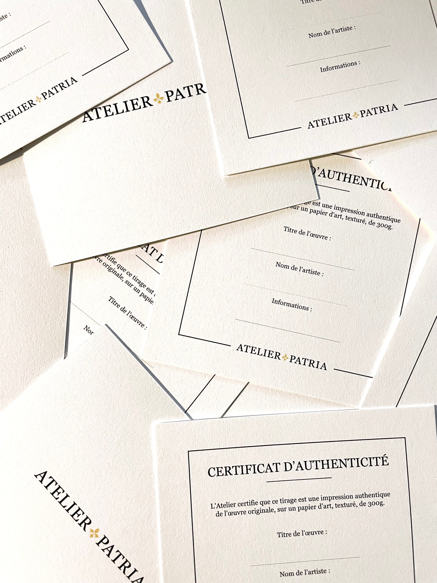 Nous avons choisi d’accompagner chaque tableau d'un certificat d’authenticité, réalisé à la main, au sein de notre atelier.